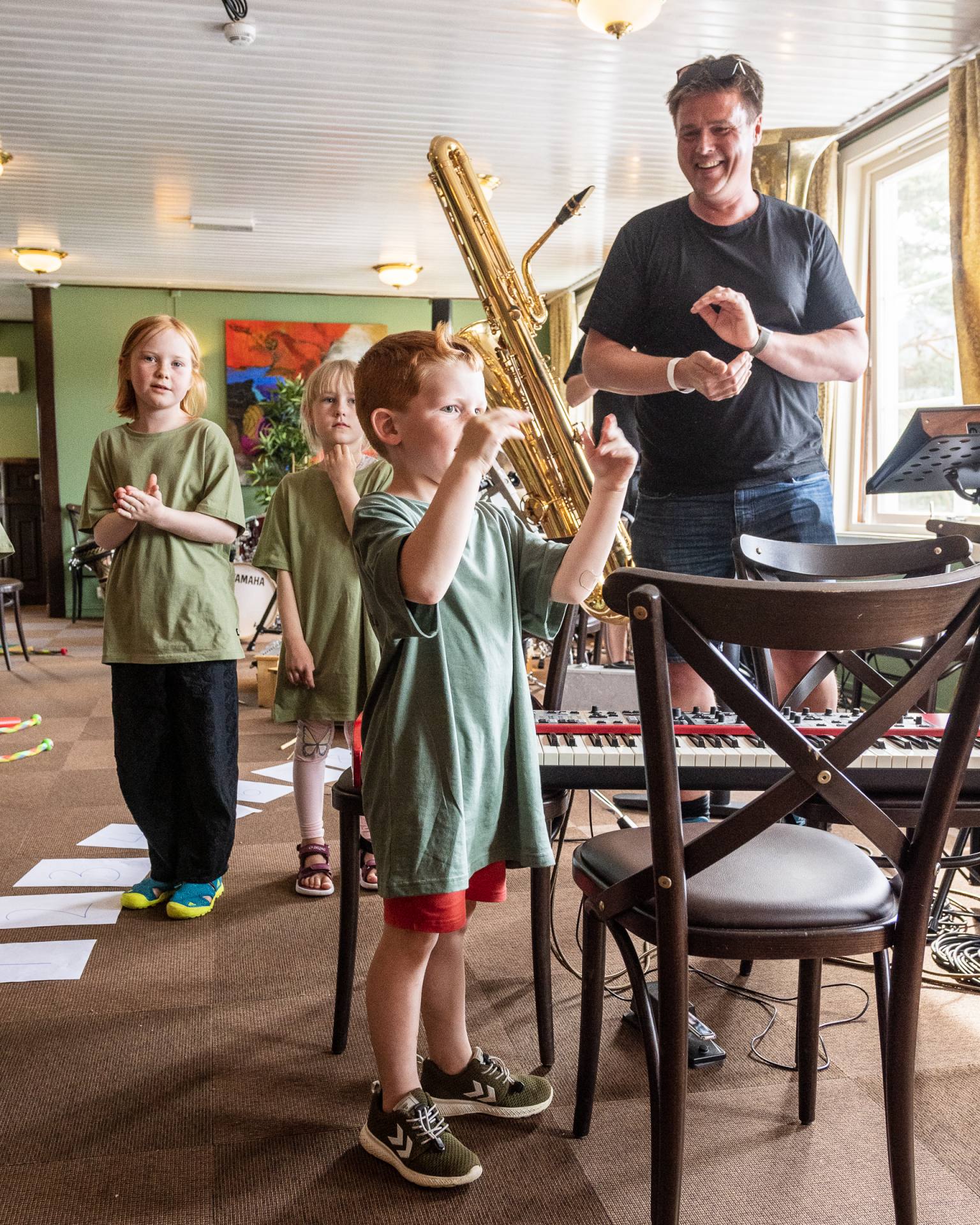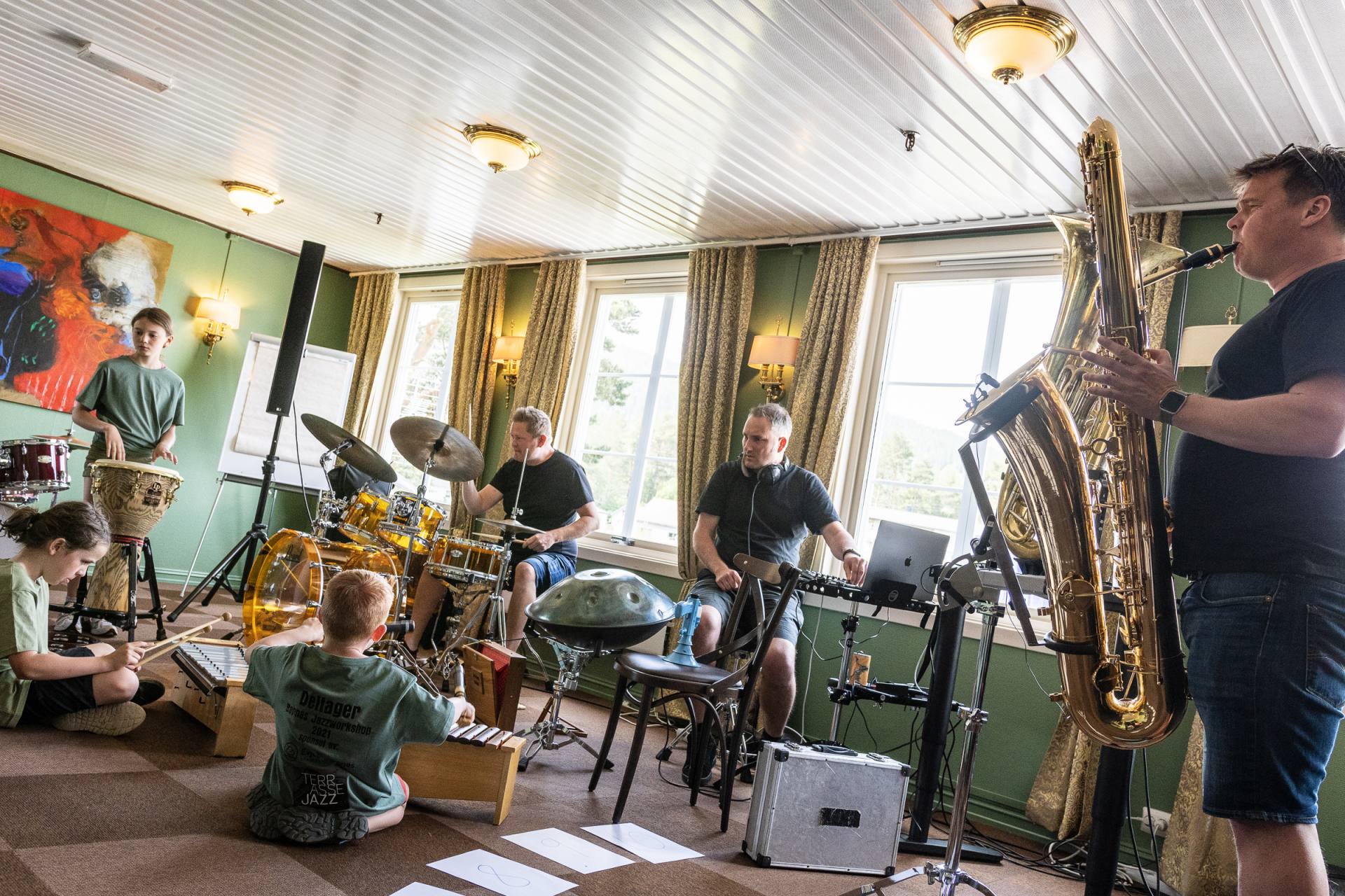 BarneJazz 2021 Workshop for barna i 2021 ble ledet av prosjektet FRI:oms (Tom Rudi Torjussen, Lars Andreas Haug og Arild Nyborg).Foto ved Birgit Fostervold, klikk på minibildene for å se hele bildene og bla deg gjennom galleriet: